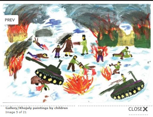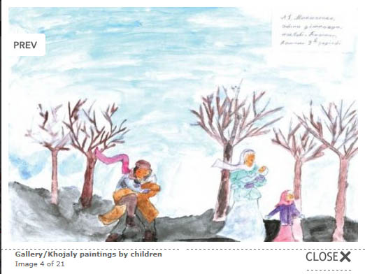 亚美尼亚的武装组织在步兵团的军事力量支持下,对居住在霍贾利的市民进行了残忍的大屠杀。结果如下:613人被杀,其中有63名儿童、106名妇女和70名老人.8个家庭完全被毁.25名儿童失去双亲.130名儿童失去了父母之一.487人受伤,其中有76名儿童.1275人被俘.150人在军事行动中失踪.对该国以及市民的个人财产造成的损失不可估量。总损失相当于五十亿(马纳特)(按照1992年1月4日的价格计算)。