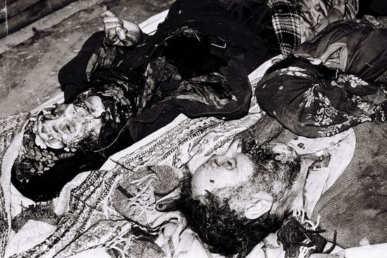 亚美尼亚的武装组织在步兵团的军事力量支持下,对居住在霍贾利的市民进行了残忍的大屠杀。结果如下:613人被杀,其中有63名儿童、106名妇女和70名老人.8个家庭完全被毁.25名儿童失去双亲.130名儿童失去了父母之一.487人受伤,其中有76名儿童.1275人被俘.150人在军事行动中失踪.对该国以及市民的个人财产造成的损失不可估量。总损失相当于五十亿(马纳特)(按照1992年1月4日的价格计算)。